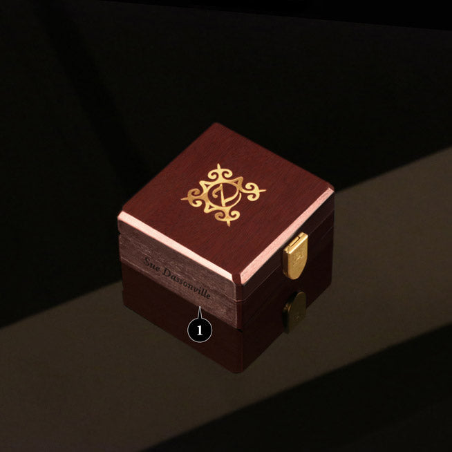 Kindly note that you can engrave the name of your gift recipient (❶) and/or the image of your choice (❷) on the box by selecting the corresponding option in the "Gifting services" section below. Let magic take over and love unfold… the answer is “yes.”