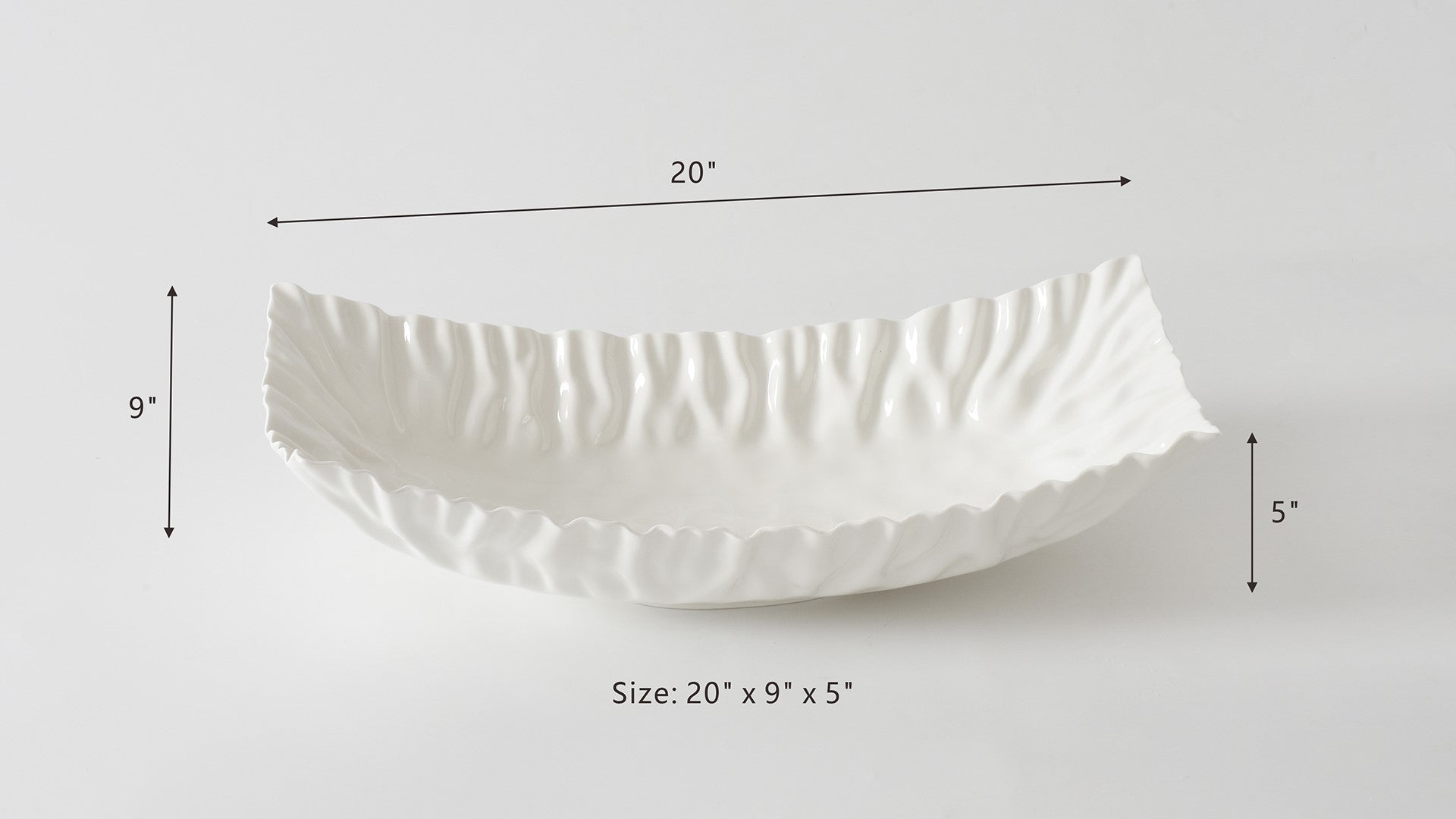 Rectangular Centerpiece in Mascali Bianca. Perfect for a gorgeous table focal point or for serving main courses and large sides! This all-purpose piece makes an easy transition from oven to table. Versatile high-fired porcelain pieces that are microwave safe! Food safe, tarnish-free, dishwasher safe, oven safe to 500°F. Easy Care.